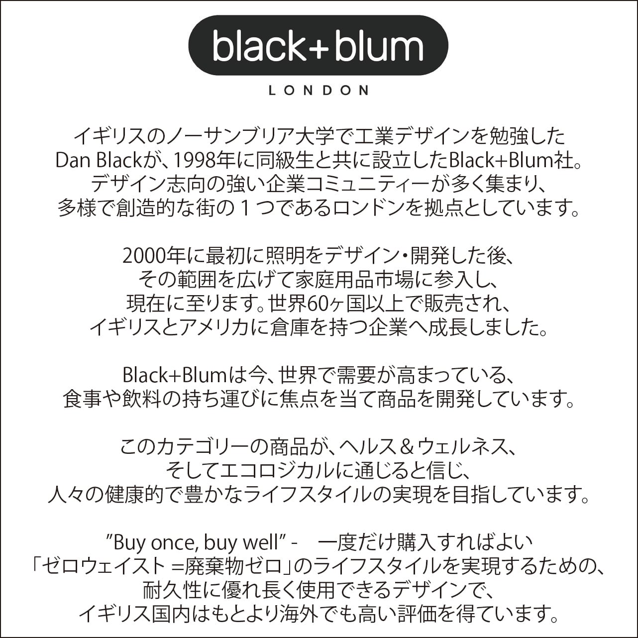 Black+Blum高品質なステンレス鋼を使用し、優れた耐腐食性と防錆性、そしてロングライフを保証。